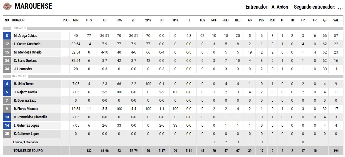 Sin embargo, ni las victorias contundentes ni las grandes actuaciones de Manuel Artiga son algo único de este domingo. Marquense ya se impuso 49-125 al colista Lobos de Chalchuapa, donde 48 puntos, 24 rebotes, 6 asistencias y 2 tapones.