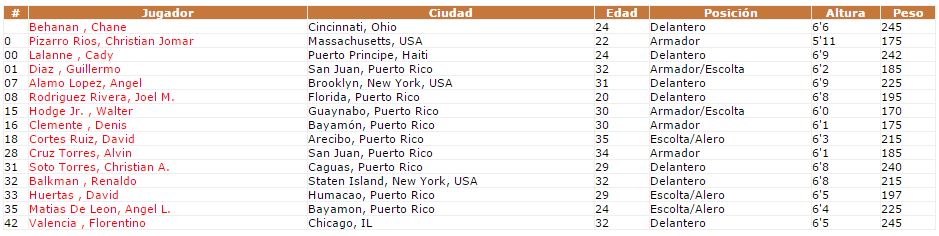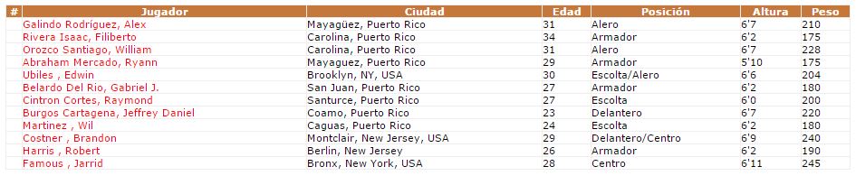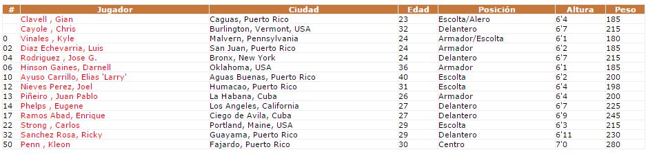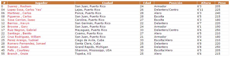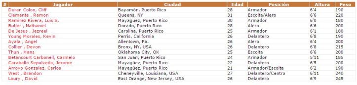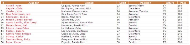 Posible quinteto titular: Carlos Arroyo, Miguel Alí Berdiel, Alexis Colón, Damion James y Shawn James