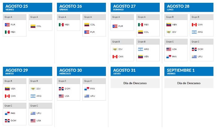 - Grupo A: Medellín (Colombia), del 25 al 27 de agosto