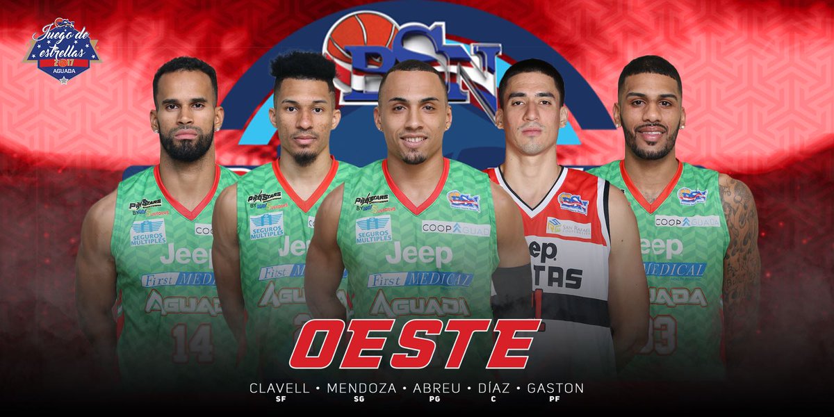 Cuadros iniciales: El equipo del Oeste tendrá a cuatro integrantes de los Santeros de Aguada y uno de los Piratas de Quebradillas. El armador Alex Abreu de los Santeros recibió la mayor cantidad de votos en el Oeste con 5,672. Su escolta lo será Rigoberto Mendoza que obtuvo 5,153 votos y el alero seleccionado fue Gilberto Clavell con 4,530 votos. El delantero es Chris Gaston de Aguada que contó con 4,302 votos. El centro del equipo es Jorge Bryan Díaz de los Piratas de Quebradillas que redondea el cuadro y recibió 4,628 votos.