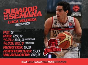 Quilmes ganó el cuarto juego por 87 a 86. Pero la racha se extendió más de lo esperado: también se llevó el quinto en el Osvaldo Casanova (90-77) para convertirse en un inesperado semifinalista de la conferencia Sur, y el envión le alcanzó para comenzar la serie ante Ferro con una victoria por 81-78 en suplementario, luego de haber estado 19 puntos abajo. Luca Vildoza promedió en estas tres partidos de la última semana 27,3 puntos (51,7 en triples con 15/29), 5,3 rebotes, 5 asistencias y un 32,7 de valoración. Y todavía no se quiere despedir.