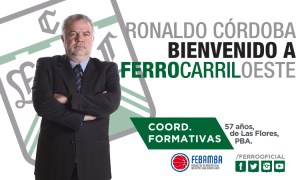 El Club Ferro Carril Oeste decidió la contratación del entrenador Ronaldo Córdoba, de vasta experiencia en distintos estamentos del básquetbol profesional, como Coordinador del área de Formativas a partir del próximo 1 de agosto.
