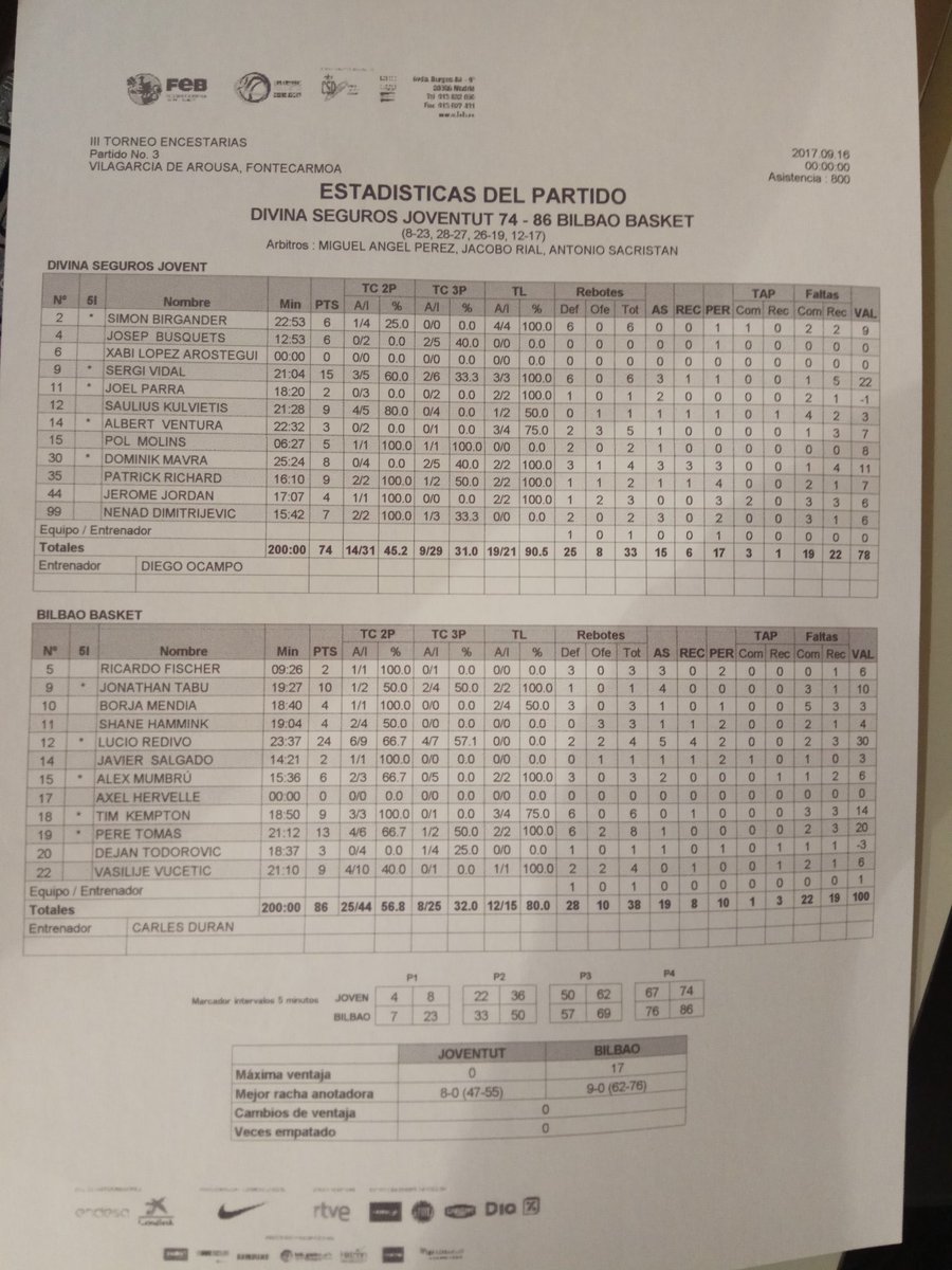El RETAbet Bilbao Basket se impuso al Divina Seguros Joventut (74-86) y se hizo con la tercera plaza del Torneo EncestaRías, que se ha venido disputando en Vilagarcía de Arousa. Lucio Redivo, con 24 puntos, 5 asistencias, 4 rebotes y 4 recuperaciones, fue el hombre del partido.