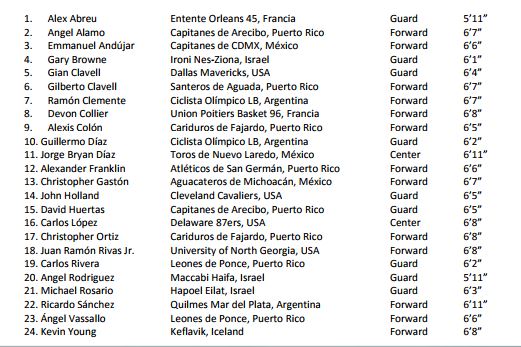 Un grupo de 11 jugadores que participaron del AmeriCup 2017 encabezan el listado que, incluye, además, a probados canasteros que cuentan con experiencia vistiendo la camiseta internacionalmente.