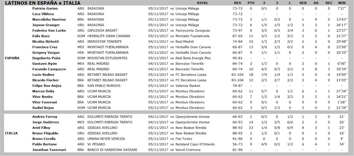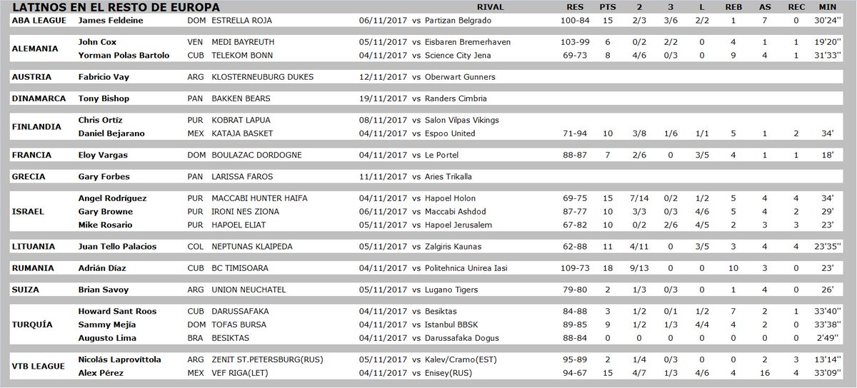 El fin de semana de los jugadores latinoamericanos en Europa, Asia y Australia nos ha dejado a un quinteto ideal de jugadores destacados con dos argentinos, un mexicano, un cubano y un boricua.