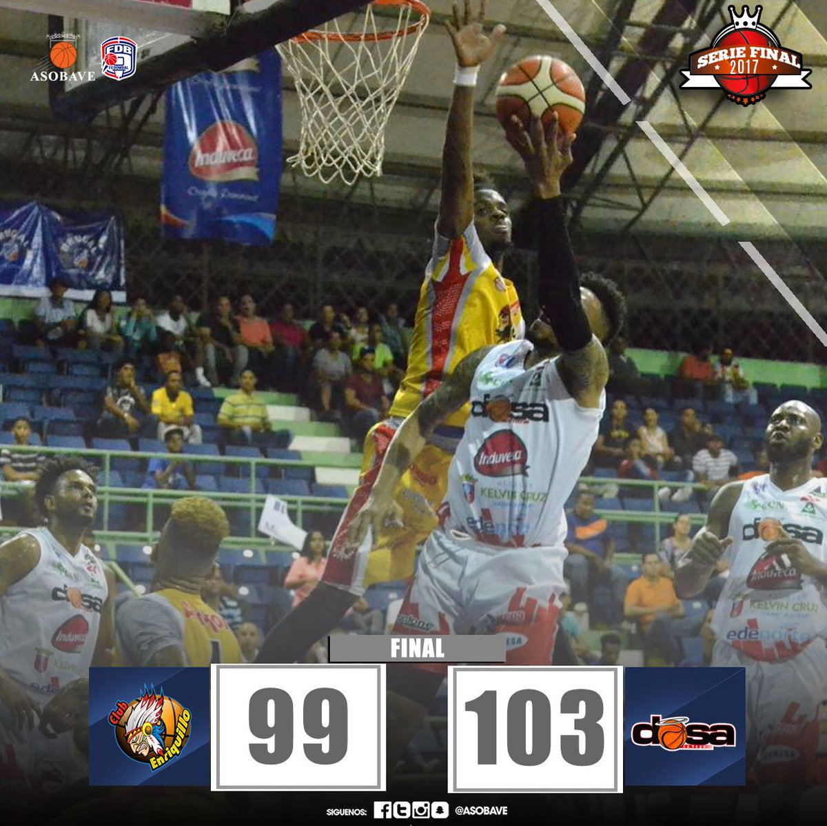 Los angelitos del Dosa se impusieron 103-99 al Enriquillo y se cercaron a un partido para coronarse campeon de la Serie Final del XXIV Torneo de Baloncesto Superior de ésta ciudad donde se disputa la Copa Malta India.