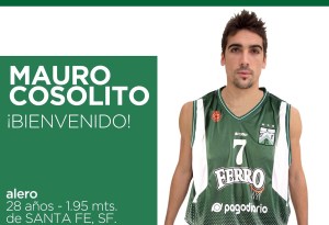 El alero nacido en Santa Fe Mauro Cosolito ha firmado hoy su incorporación a Ferro y con chances claras de debutar a la brevedad. Además se desvincularon Jaz Cowan y Diego Figueredo.