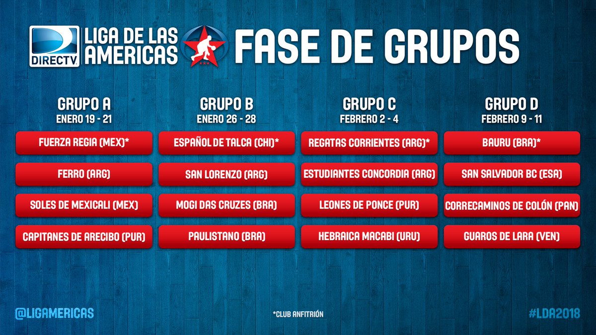 La Federación Internacional de Baloncesto (FIBA) en las Américas confirmó los grupos, fechas y sedes de la edición 2018 de la DIRECTV Liga de las Américas.
