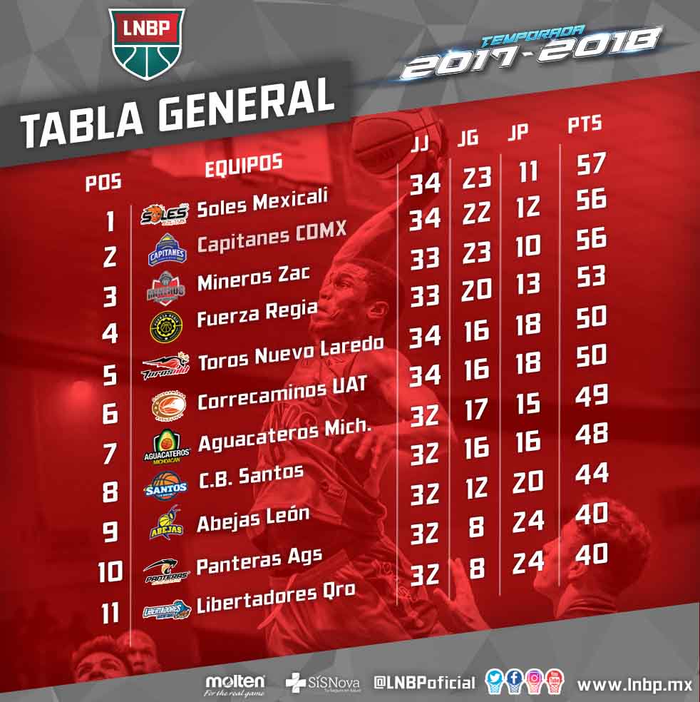 Soles dividió ante Santos. El equipo cachanilla no pudo sumar los dos partidos de su serie de esta semana tras caer en el primero ante los potosinos en un final apretado, donde Jovan Harris puso por delante a Soles a tres segundos y Joseph Soto no consiguió convertir sobre la bocina. El dominicano Antonio Peña fue el mejor del encuentro con 26 puntos y 12 rebotes, mientras que Eugene Phelps anotó 21 puntos y 7 rebotes en los de Iván Déniz.