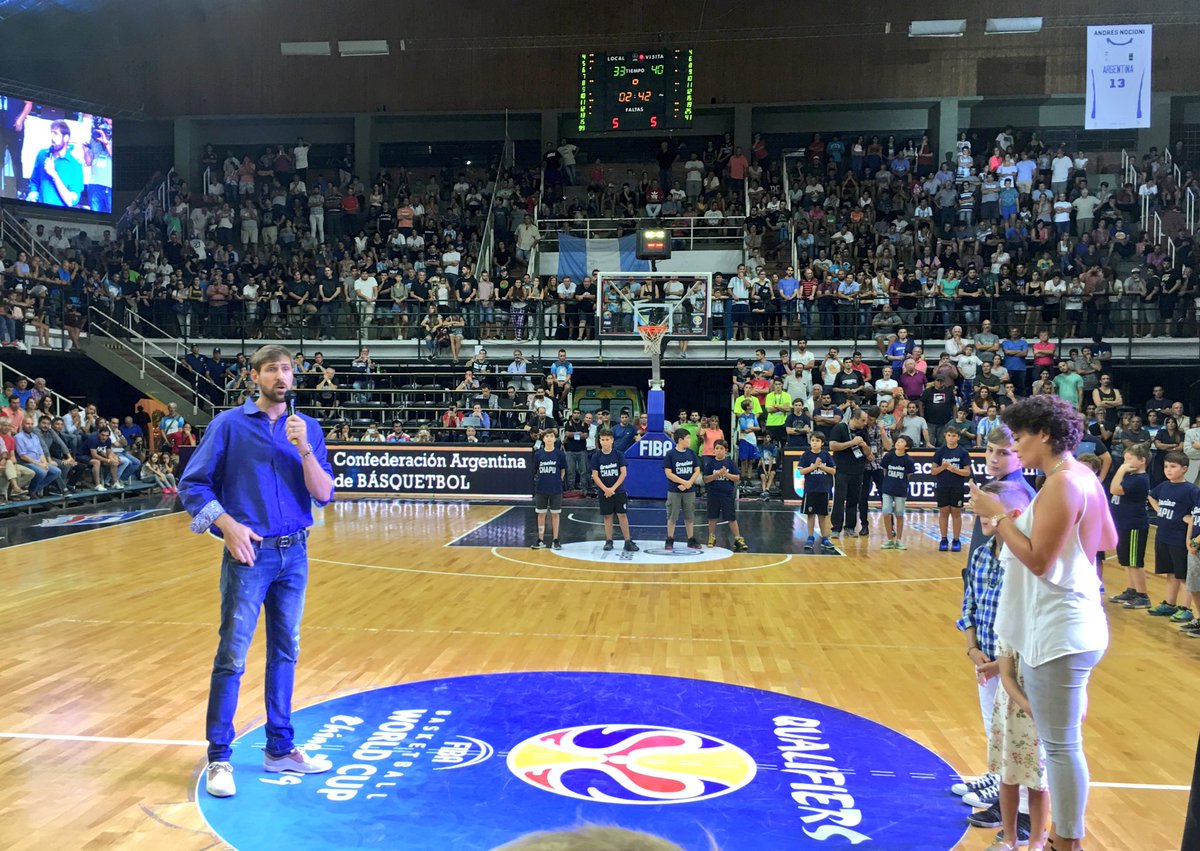 El descanso del Argentina-Paraguay tuvo un gran protagonista en la figura de Andrés «Chapu» Nocioni, cuya camiseta número 13 fue retirada de la selección argentina y recibió un gran homenaje de afición y ex-compañeros.