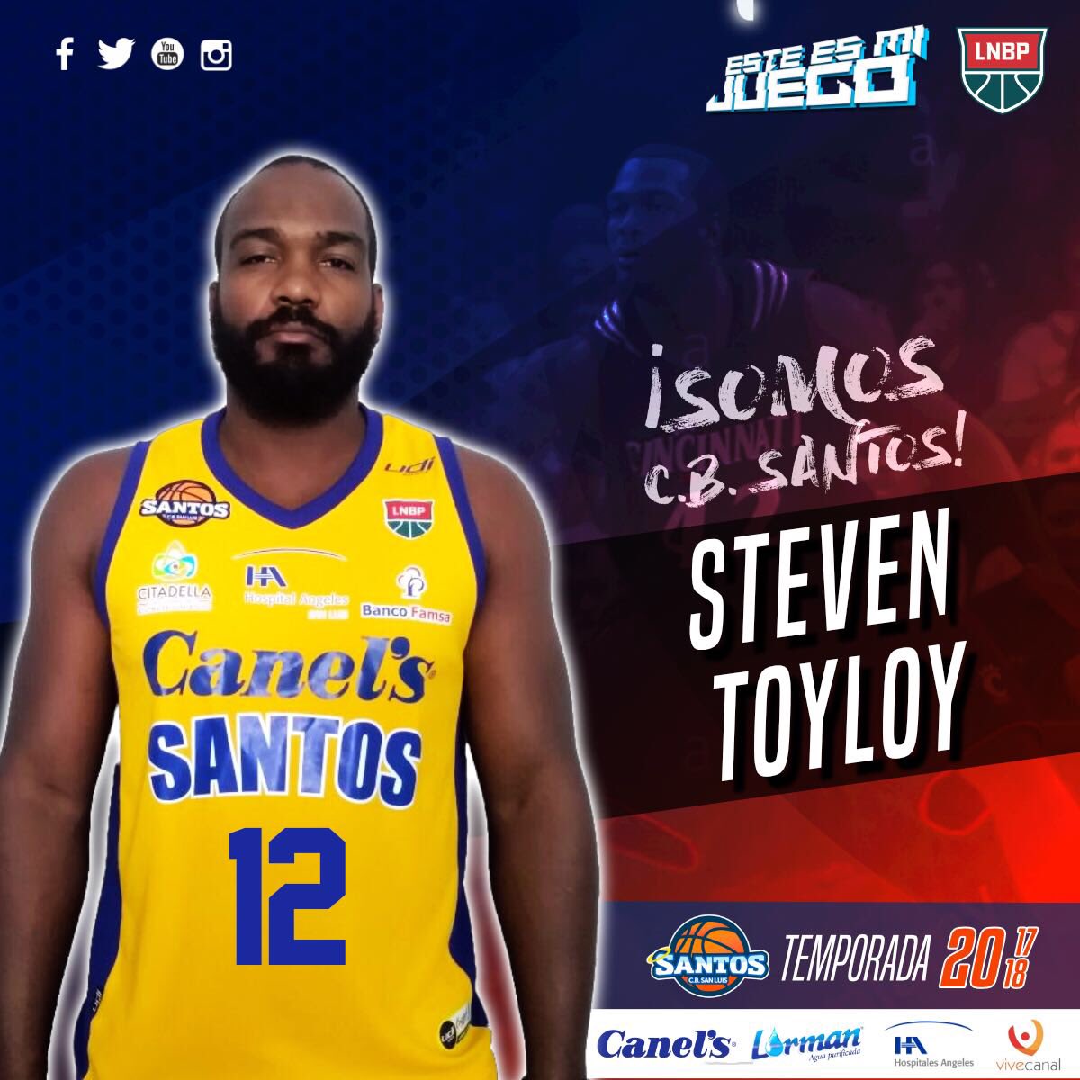 De cara al arranque de los play-offs de la temporada 2017-2018 de la Liga Nacional de Baloncesto Profesional, la escuadra del CB Santos San Luis se refuerza con la llegada del jugador Steven Toyloy, quien ya viajó con el equipo y podría ver acción ante los Aguacateros de Michoacán.
