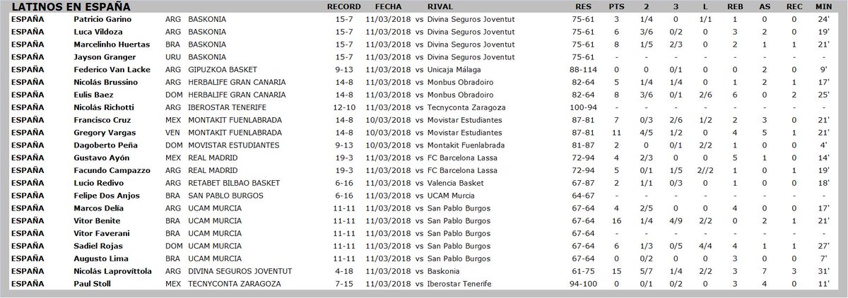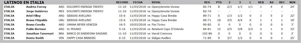 - (Escolta) SAMMY MEJIA: 17 puntos, 8 rebotes, 5 asistencias y 4/6 en triples en el triunfo de Tofas Bursa ante Istanbul por 80-73