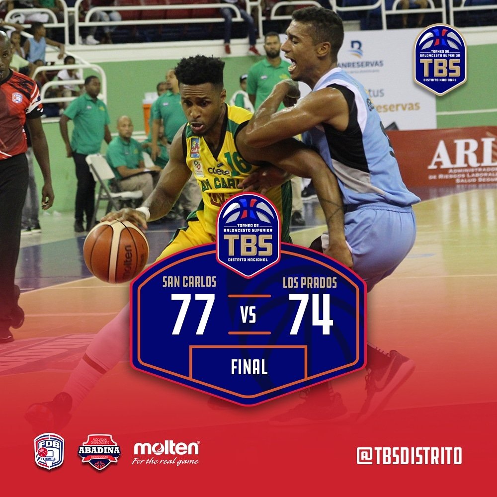 El club San Carlos consiguió este miércoles un triunfo 77-74 sobre Los Prados y escaló a la segunda posición del Grupo B metiéndolo de lleno en la disputa del puesto restante a la serie semifinal, en el XLII Torneo de Baloncesto Superior (TBS) del Distrito Nacional, tras el choque efectuado en el Palacio de los Deportes Profesor Virgilio Travieso Soto.
