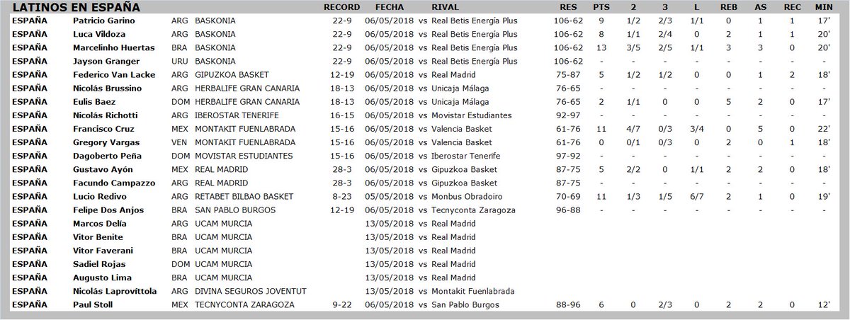 - (Ala-pívot) FABRICIO VAY: 18 puntos, 5 rebotes y 3 asistencias en la derrota de Klosteneuburg ante Gmunden por 67-76