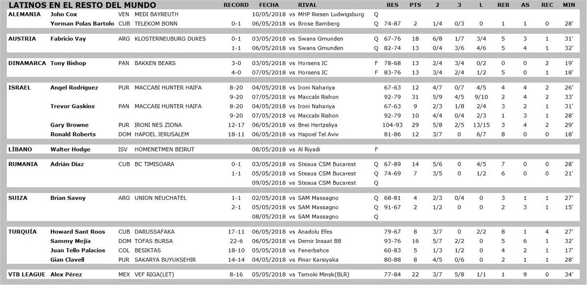 - (Base) ÁNGEL RODRÍGUEZ: 31 puntos, 4 asistencias y 4/5 en triples en el triunfo de Maccabi Haifa ante Maccabi Rishon por 92-79