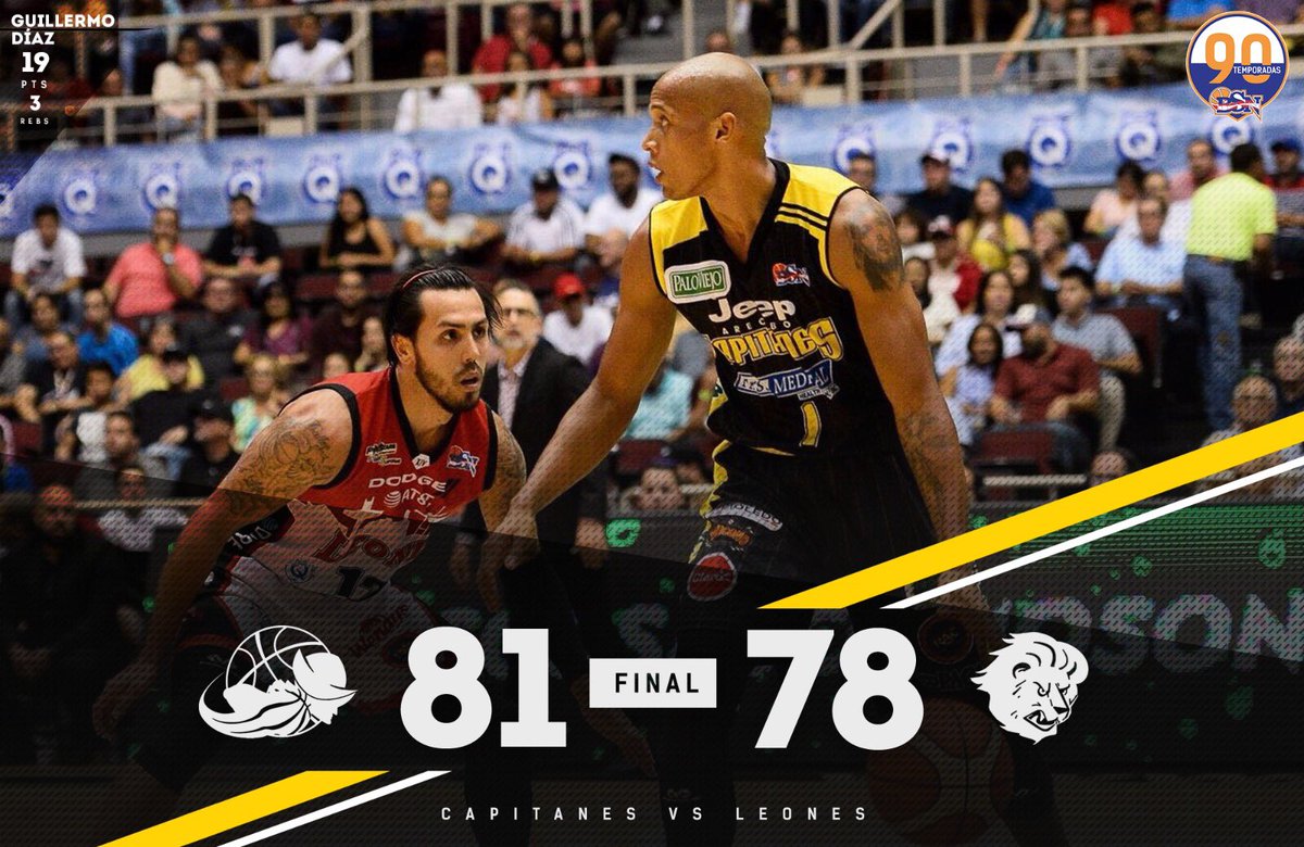 Los Capitanes de Arecibo resistieron un empuje final de los Leones de Ponce para vencerlos marcador de 81-78 en el Auditorio Juan “Pachín” Vicens. Con este resultado los Capitanes consiguen su primera victoria en la carretera y empatan su serie particular con los Leones 1-1, luego de que perdieran en el coliseo “Petaca” Iguina contra Ponce el pasado 10 de mayo. Ahora los Capitanes y Leones juegan para marca de 4-3.