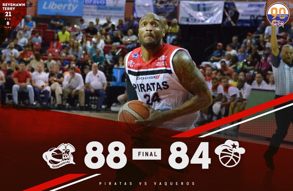Quebradillas fue a Guaynabo y venció a los Vaqueros de Bayamón 88-84. Ahora ambos equipos juegan para marca de 4-3. En los minutos finales tanto Bayamón como Quebradillas afinaron su puntería a larga distancia, intercambiando la ventaja con triples. Un triple de Marcus Williams quedando 26 segundos y más adelante dos tiros libres de Reyshawn Terry aseguraron la victoria de los Piratas.