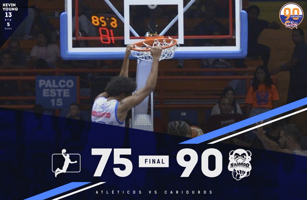 En Fajardo, los Cariduros dominaron a los Atléticos de San Germán 90-75. Ahora Fajardo juega para marca de 3-3 y San Germán baja al último lugar con 2-5. Fajardo contó con cinco anotadores en doble figura, siendo el mejor Kevin Young con 13 puntos. El más destacado fue Eric Dawson con 12 puntos y 13 rebotes. San Germán fue liderado por Alex Franklin que hizo 20 puntos.