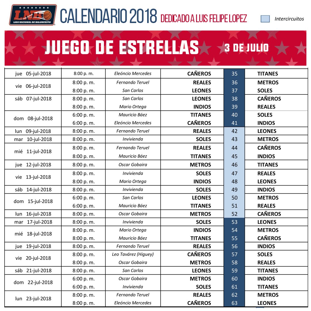 - 20 de julio: Cañeros vs Soles / Metros vs Reales