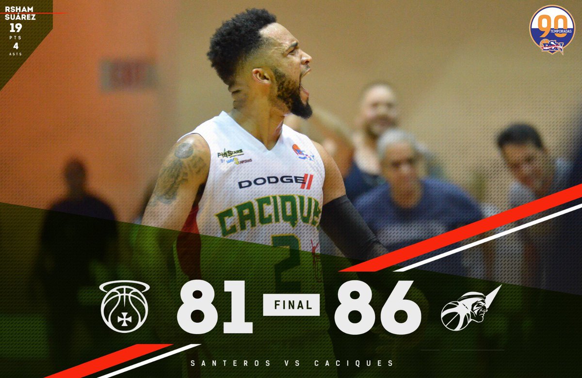 En Humacao los Caciques volvieron a la ruta de la victoria al vencer a los Santeros de Aguada 86-81. Brandon Costner anotó 27 puntos, consiguiendo 19 de ellos en la segunda mitad, para llevar a la victoria a su equipo que ahora juega para marca de 8-8. Rasham Suárez fue clave del banco con 19 puntos y 4 asistencias. Ahora los Caciques juegan para 8-8.