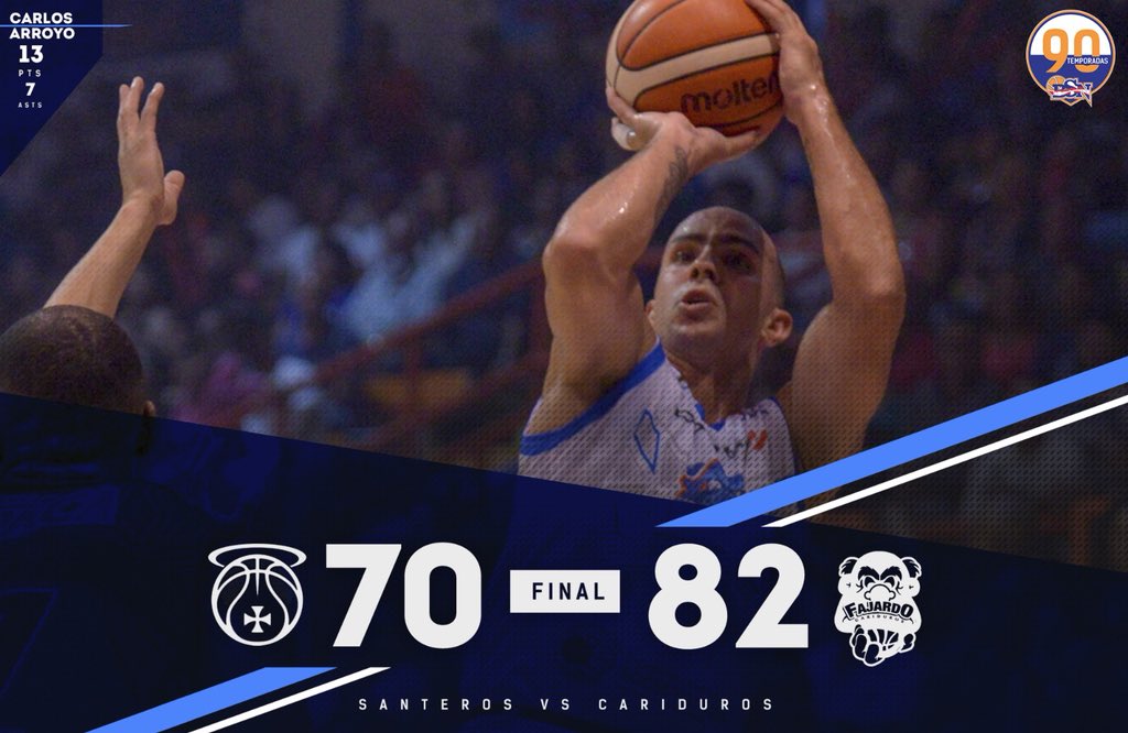 En Fajardo, los Cariduros frenan su racha de derrotas al hilo en dos al vencer a los Santeros de Aguada 82-70 en un duelo entre equipos que luchan por la clasificación. Con el resultado los Cariduros mejoran su marca a 8-11 para subir al quinto lugar y los Santeros bajan al séptimo lugar con 8-12.