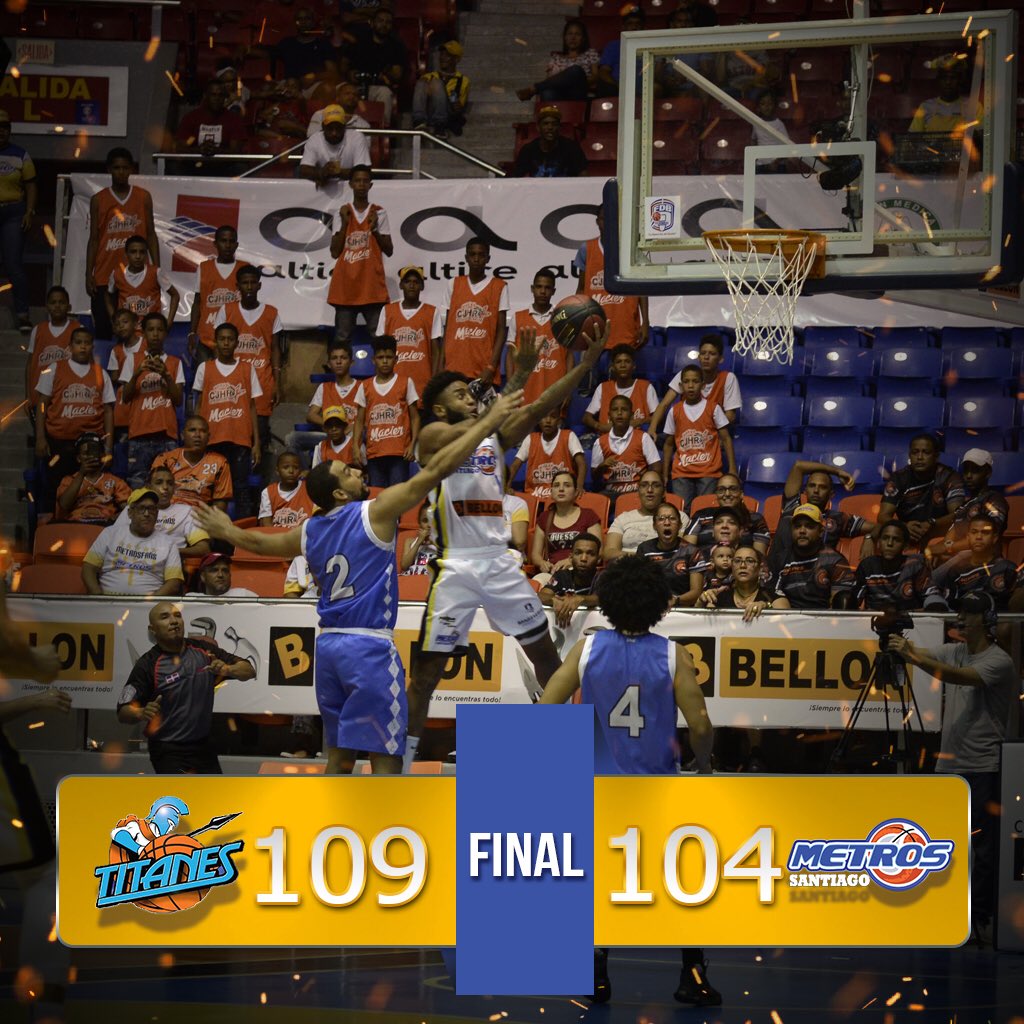 Con 39 puntos del refuerzo Paris Bass, Los Titanes le otorgaron la quinta derrota al hilo a los Metros de Santiago, al derrotarlo con marcador de 109-104 y sumergirlo en el sótano del Circuito Norte.