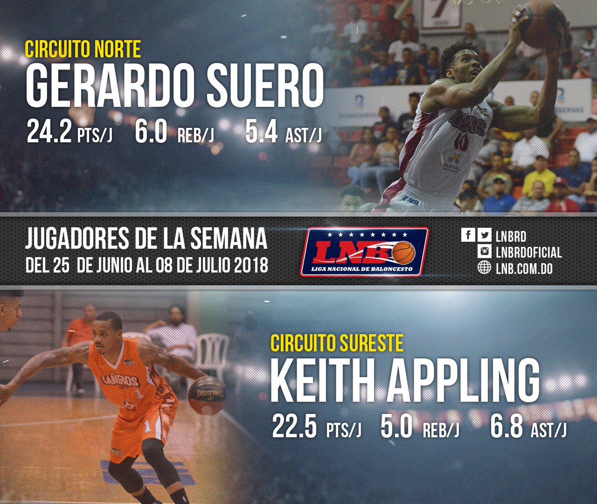 · Gerardo Suero y Keith Appling fueron elegidos jugadores de la semana en la LNB dominicana