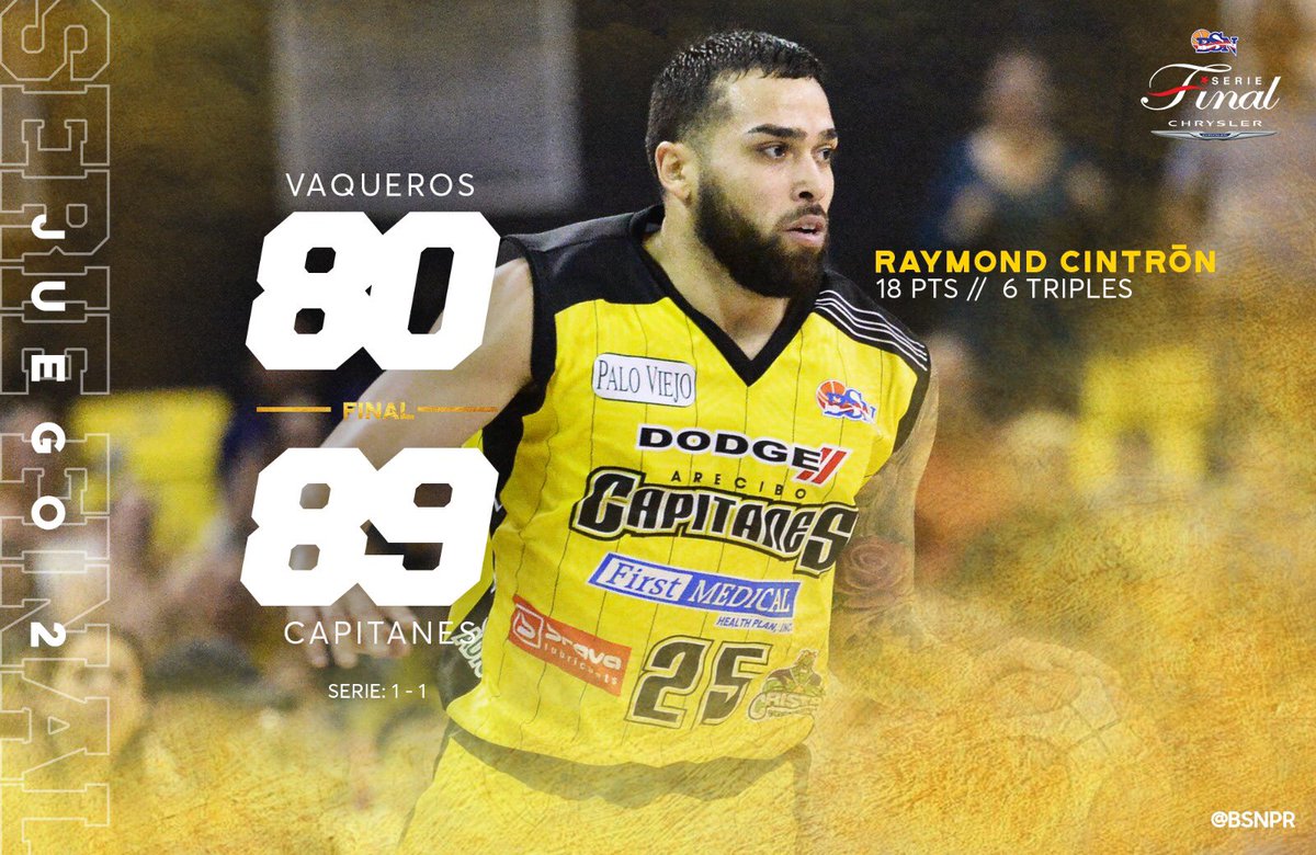 Los Capitanes de Arecibo dominaron a los Vaqueros de Bayamón 89-80 para empatar la Serie Final Chrysler a una victoria por equipo. En esta ocasión los Capitanes aguantaron otra remontada vaquera gracias a su defensa y alta efectividad a larga distancia. Un triple de Raymond Cintrón dejó sin aire a los Vaqueros quedando 1:56 de juego para poner el marcador 85-72.