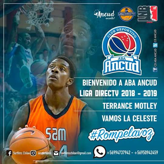 Otro conocido de LNB Chile será la segunda ficha extranjera de ABA Ancud. El ala-pívot estadounidense Terrance Motley jugará para ‘La Celeste’ en esta temporada 2018-2019 de Liga Nacional y se reencontrará con el pívot ‘Gene’ Teague, con quien alcanzó a competir en cuatro partidos la campaña pasada con Universidad Católica.