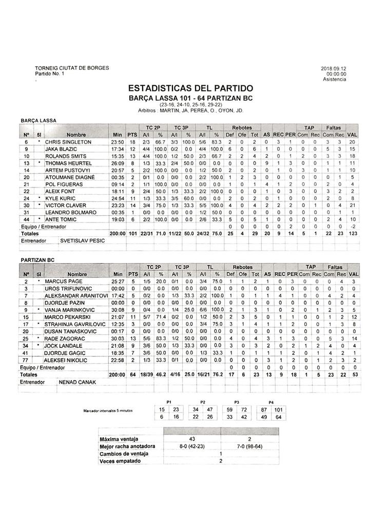 Leandro Bolmaro jugó sólo 35 segundos y consiguió forzar una falta y anotar uno de los dos tiros libres de que dispuso cuando el partido ya estaba definido y que venció el Barça por un claro 101-64.
