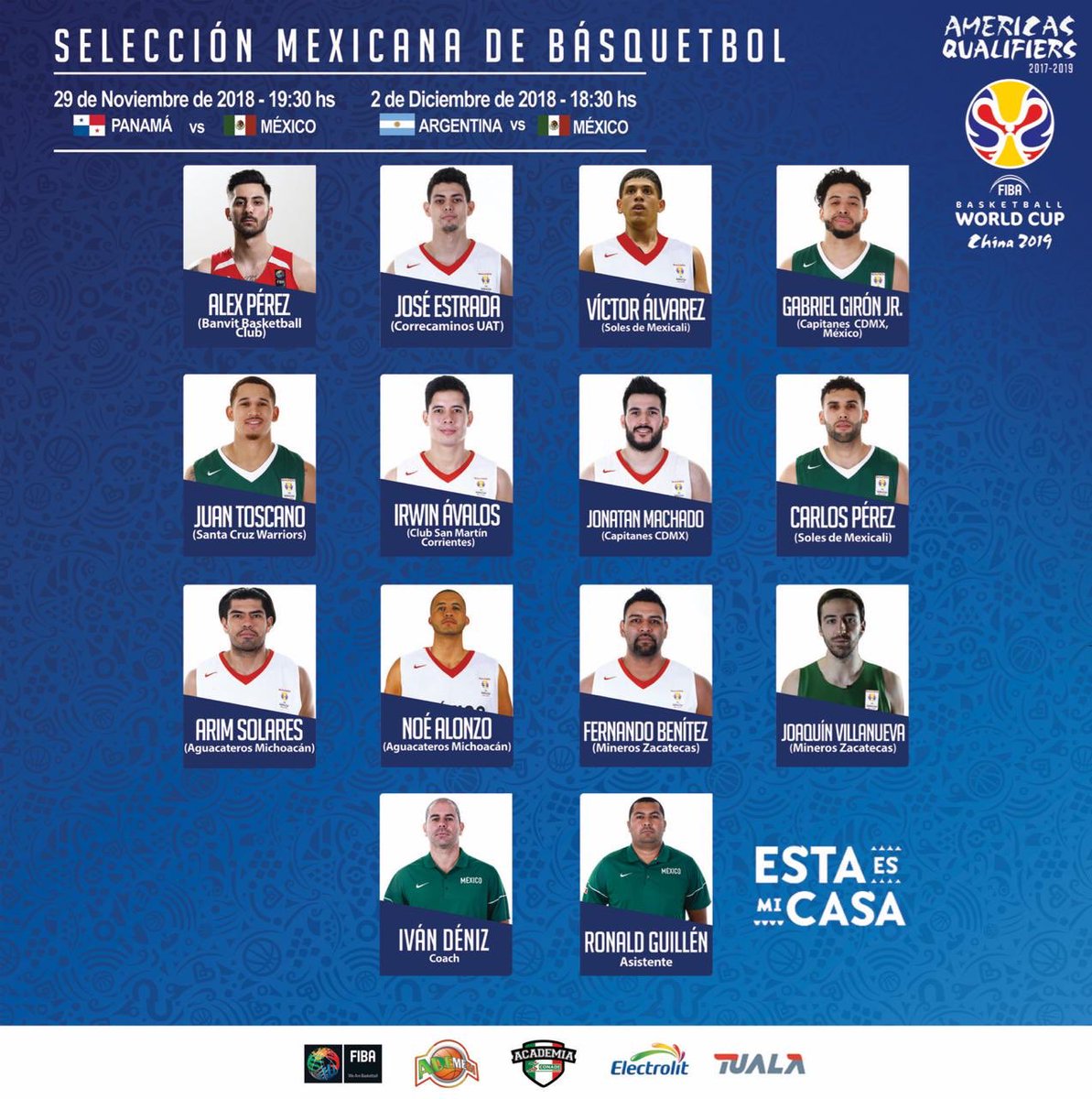 Gabriel Girón, Juan Toscano y Alex Pérez serán los jugadores que comanden una convocatoria con numerosas bajas como las de Gustavo Ayón y Paco Cruz por los compromisos con sus clubes y de Israel Gutiérrez en plena recuperación de una lesión, además de varios jugadores que manifestaron su retirada de la selección semanas atrás.