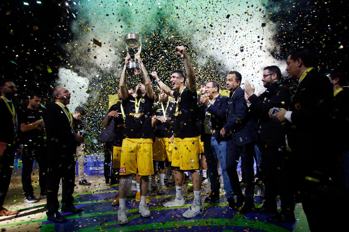 Bajo la atenta mirada de los directivos Horacio Muratore, Markus Studer, Patrick Comninos y Carlos Alves, AEK registró una victoria por 86-70 sobre Flamengo para obtener los máximos honores. El equipo de Grecia celebró sosteniendo el trofeo en alto en el escalón más alto del podio.
