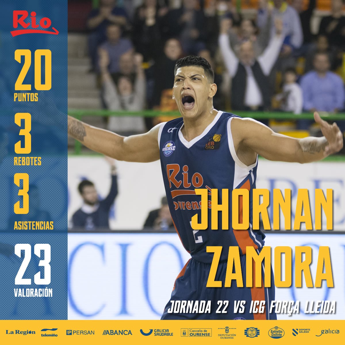 - Jhornan Zamora: 20 puntos, 3 rebotes, 3 asistencias y 2/4 en triples en el triunfo d Ourense ante Lleida por 61-70