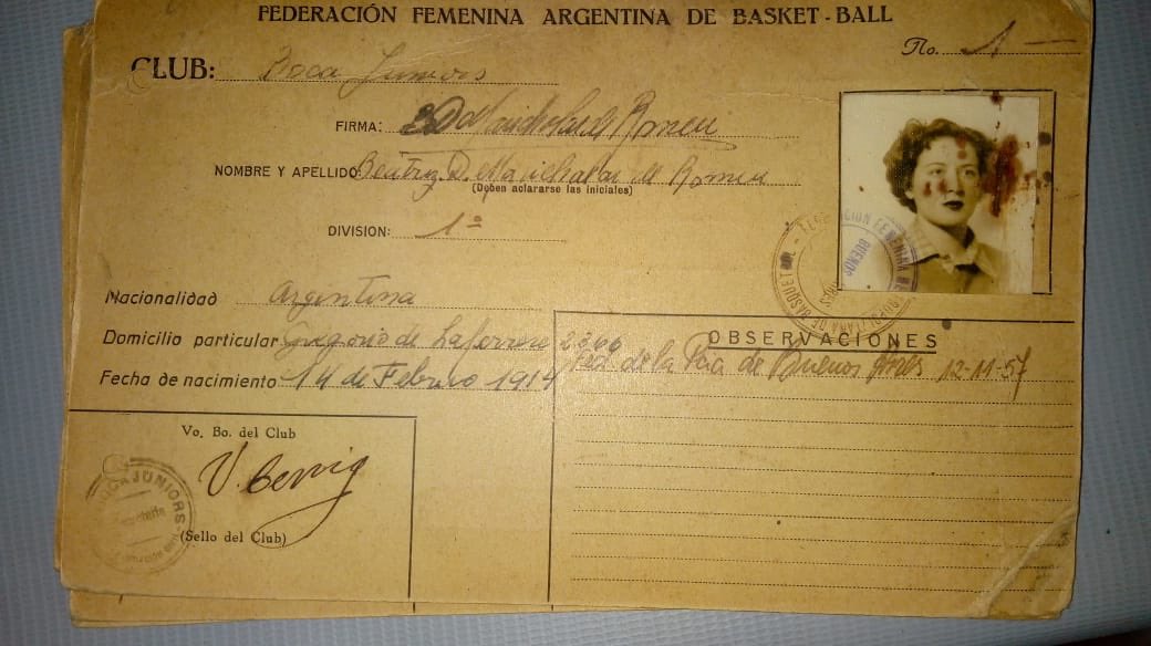 Marichalar fue registrada como la socia número uno de la Federación, junto a otras siete compañeras de Boca Juniors, entre las que aparecen Pilar Mazzini (2°), Josefina Grecco (3°) y Leonor Lalliard (4°). ¿Quién vino a continuación? Delia Gago (9°), de San Lorenzo, otro de los ocho clubes fundadores que hoy lamentablemente han descontinuado la práctica del básquet femenino (el último fue Teléfonos en 2017).
