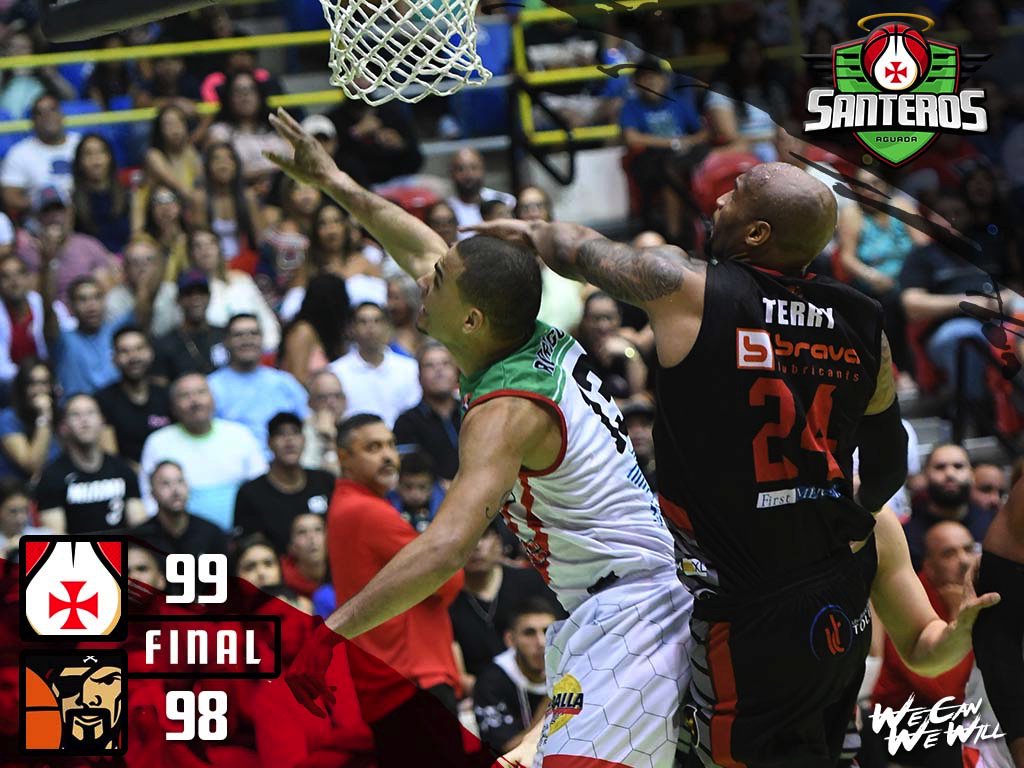 El duelo fue uno de mucha intensidad defensiva por parte de ambos equipos y mantuvieron ese compromiso hasta los últimos segundos de juego. La defensa de los Santeros forzó un error de Reyshawn Terry en el manejo de balón el cual permitió que Jonathan Rodríguez anotara en transición quedando 4.9 segundos en el segundo tiempo extra para darle la victoria a su equipo.