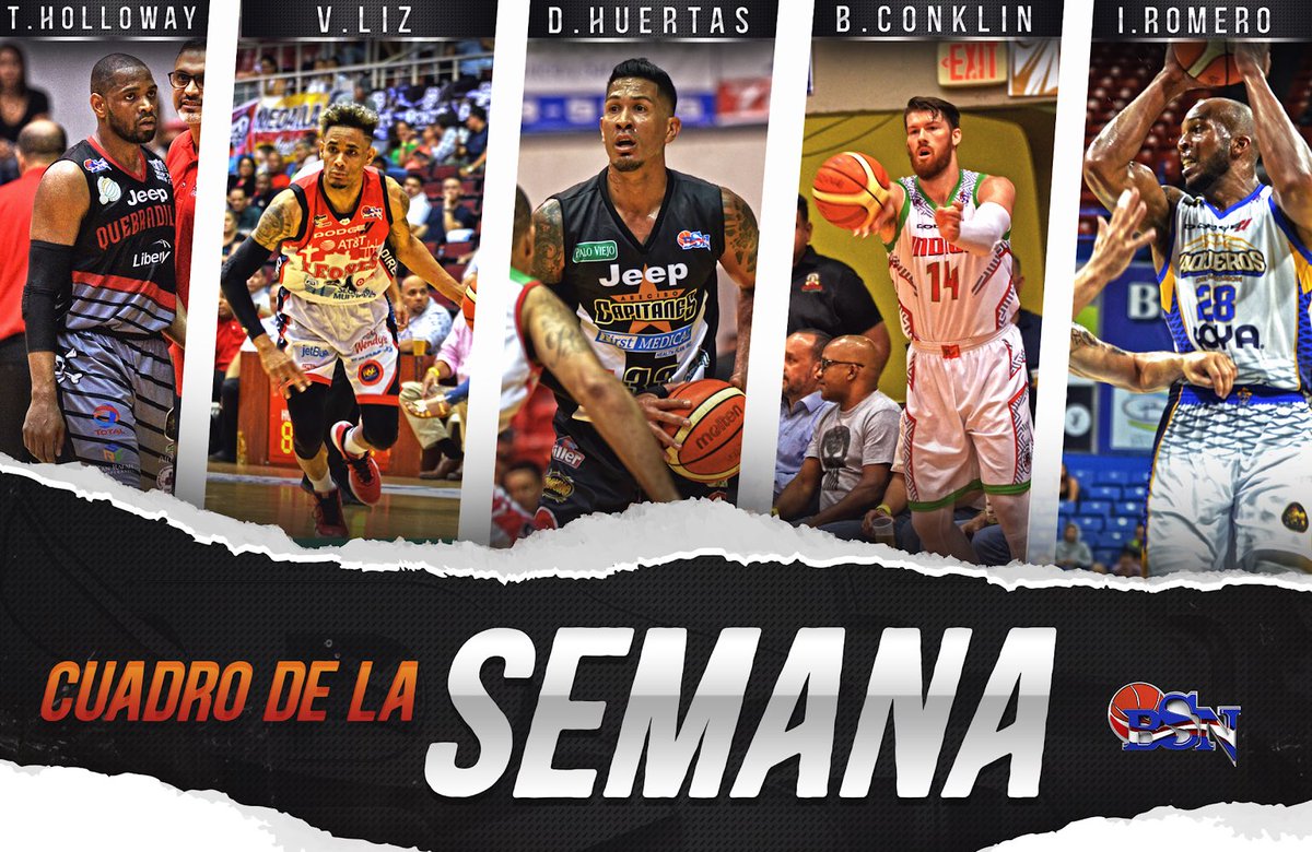 El resto del cuadro estelar de la semana incluye a Tu Holloway (Quebradillas), Víctor Liz (Ponce), David Huertas (Arecibo) y Brian Conklin (Mayagüez).