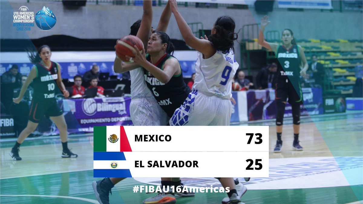México de principio a fin. En partido del Grupo B, México logró su primera conquista y dejó su marca en 1-1 al vencer cómodamente a El Salvador (0-3), por 73-25. La escuadra azteca dominó desde el arranque y fue ampliamente superior en todos los aspectos.