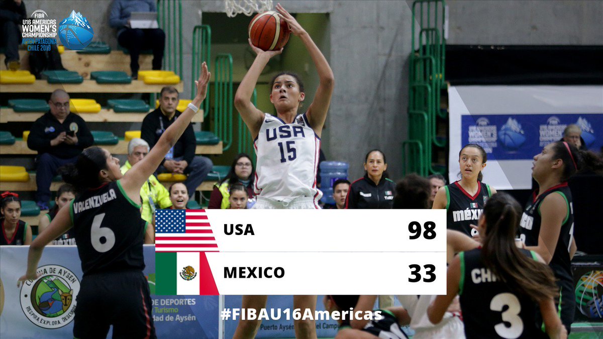Estados Unidos no dio espacio para sorpresas y derrotó abultadamente a México con marcador de 98-33, para terminar en el primer lugar del Grupo B, en el Campeonato FIBA Sub-16 Femenino de las Américas, que se lleva a cabo en Aysén, Chile.