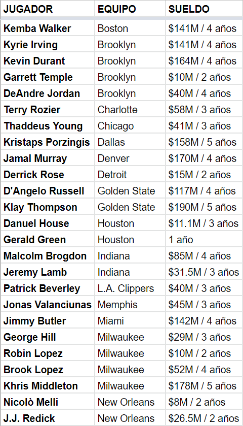 Fueron hasta 3.100 millones de dólares los que se sumaron en acuerdos durante este arranque de mercado, con Kemba Walker, D’Angelo Russell, Kyrie Irving, Kevin Durant, Terry Rozier, Malcolm Brogdon, Khris Middleton, Ricky Rubio o Nikola Vucevic como nombres más destacados.