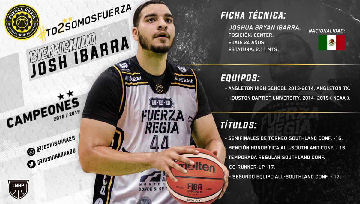 El mexicano Joshua Bryan Ibarra, se convierte en el primer jugador en integrar la plantilla que participará en la Temporada 2019-2020 de la Liga Nacional de Baloncesto Profesional con Fuerza Regia.