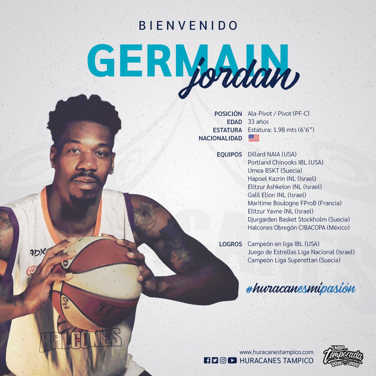 El ala-pívot Germain Jordan (33 años y 1.98 metros) viene de jugar con Halcones de Obregón en la Cibacopa, donde ha promediado 18.4 puntos y 7.1 rebotes y cuenta con experiencia en Suecia, Israel y Francia tras formarse en la NAIA con la Universidad de Dillard.