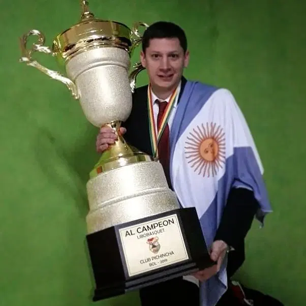 El joven entrenador nacido en San Luis cuenta con experiencia con Banda Norte, Club Central Argentino, Ciudad de Saladillo y varias categorías de las selecciones de Chivilcoy entre otros equipos y está viviendo su primera experiencia en el exterior de una manera sumamente exitosa, nada más y nada menos que con un campeonato. El título de Pichincha de Potosí también es el primero tras caer en sus dos finales anteriores.