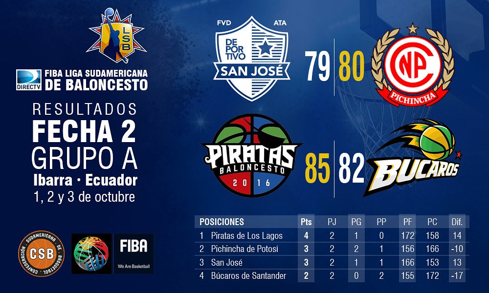 Pichincha de Potosí 80 – Deportivo San José 79. Una canasta de Cristhian Camargo a cinco segundos del final culminó un triunfo histórico del campeón boliviano