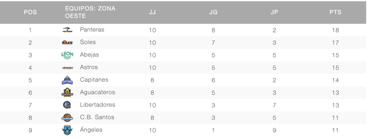 La LNBP ha celebrado su primera décima de jornadas del año. El torneo mexicano mantiene, hasta ahora, una brava competición de media tabla para arriba en cada una de sus zonas. Por el lado del Este, Mineros de Zacatecas se mantiene alejado de sus rivales al ser el primer equipo con 20 puntos, mientras que en el Oeste, las Panteras de Aguascalientes siguen sorprendiendo a propios y extraños desde el peldaño más alto.