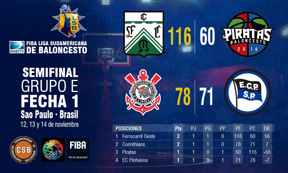 La jornada de hoy: La acción del miércoles se abrirá con Ferro y Pinheiros y se cerrará con el partido entre Corinthians y Piratas