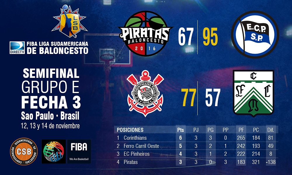 Pinheiros finalizó tercero. El conjunto paulista derrotó por 95-67 a Piratas en el partido que abrió la última jornada de la primera zona semifinal de la DirecTV Liga Sudamericana de Baloncesto 2019.