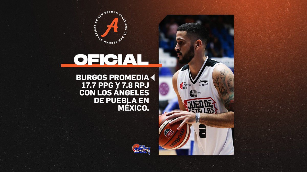 “Me siento súper contento con esta nueva etapa en mi carrera profesional’, dijo Burgos. “Poder defender los colores de San Germán es un privilegio, tanta historia en un rectángulo con grandes jugadores que también sudaron naranja y negro, solo me queda decir que estoy sumamente agradecido con la oportunidad que me acaban de brindar. Estoy ansioso por comenzar y sentir esa fanaticada que muchos equipos le temen y poder compartir cancha otra vez con mi mejor amigo, Tjader Fernández.”