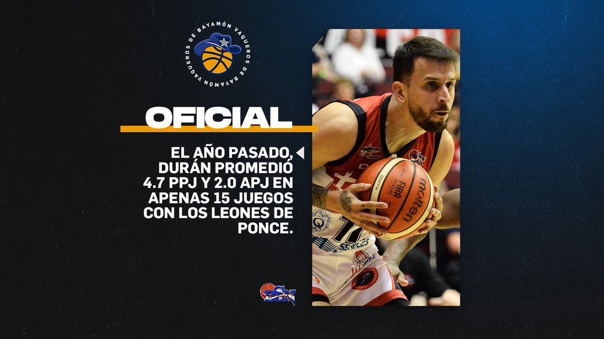 Durán viene de jugar con Real Estelí en Nicaragua, con los que salió campeón de la Liga Superior y promedió 14.5 puntos, 3.5 rebotes y 3.5 asistencias en la participación con el equipo dirigido por David Rosario en la BCL Américas.