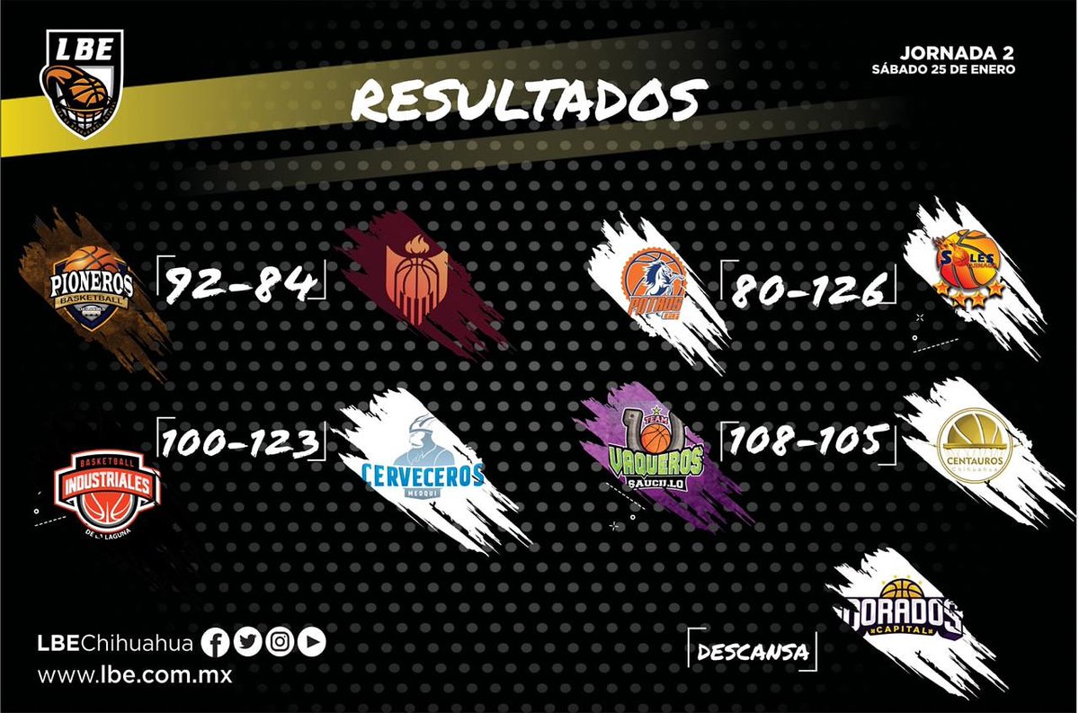 Soles 126-80 Potros. El equipo de los Soles de Ojinaga se metió a la casa de los Potros en Casas Grandes y le arrebató el triunfo por 126 a 80, con una gran actuación del norteamericano Jermine Jordan, con este resultado Soles puso su récord en 1-1.