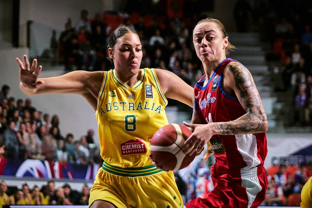Australia consiguió su primera victoria en el Torneo de Clasificación Olímpica Femenina FIBA en Bourges con una victoria por 100-74 contra Puerto Rico gracias a una exhibición dominante de Liz Cambage.